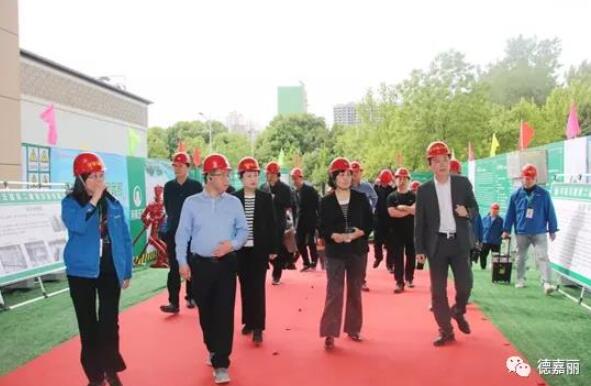 【概要描述】4月28日下午,河南省建設工程質量監督總站站長郝樹華、黨支部書記吳小紅一行在信陽市住建局副局長張奔、質監站站長李敬陽等領導陪同下,蒞臨公司NBW結構保溫一體化在建項目佳和熙岸,考察調研項目工程質量標準化工作開展情況。 ? 郝樹華站長實地走訪了項目現場,在質量標準化和新技術應用示范區,他對規范建立工程質量管理長效機制,以及如何深入推進工程質量管理標準化工作提出了許多寶貴意見。 ? 當他了解項