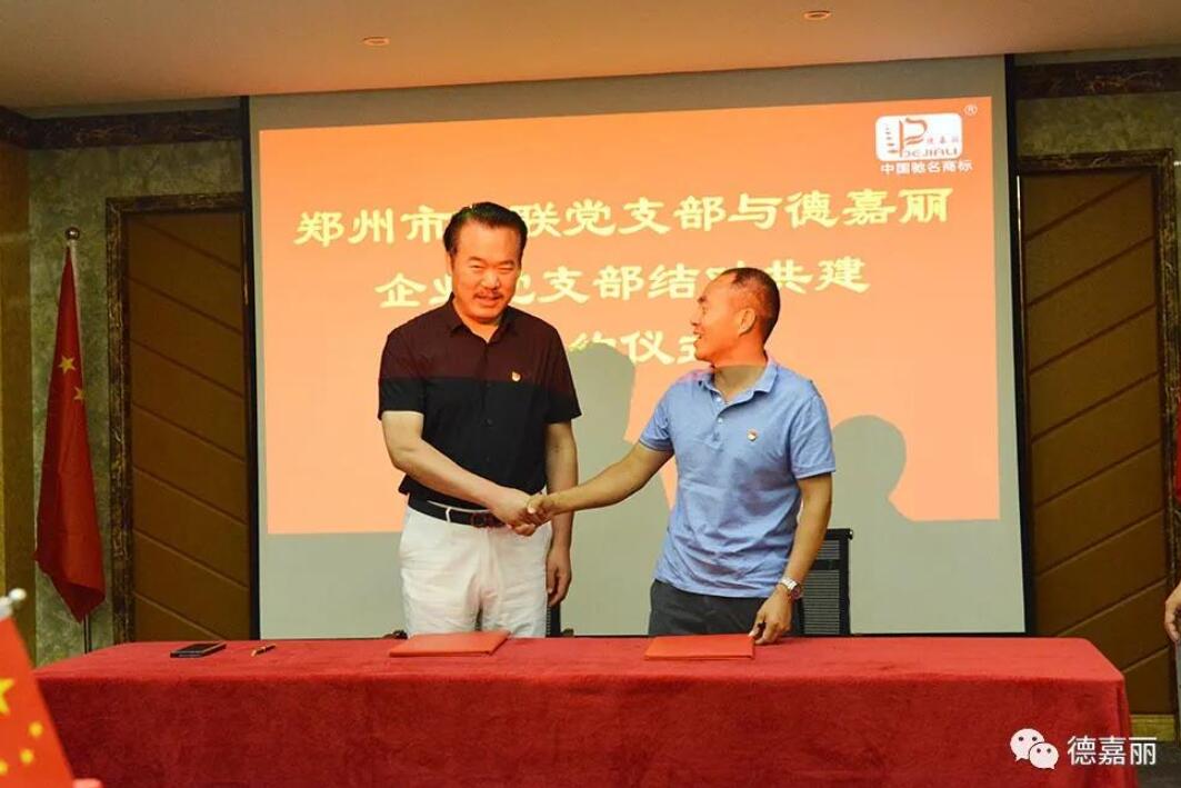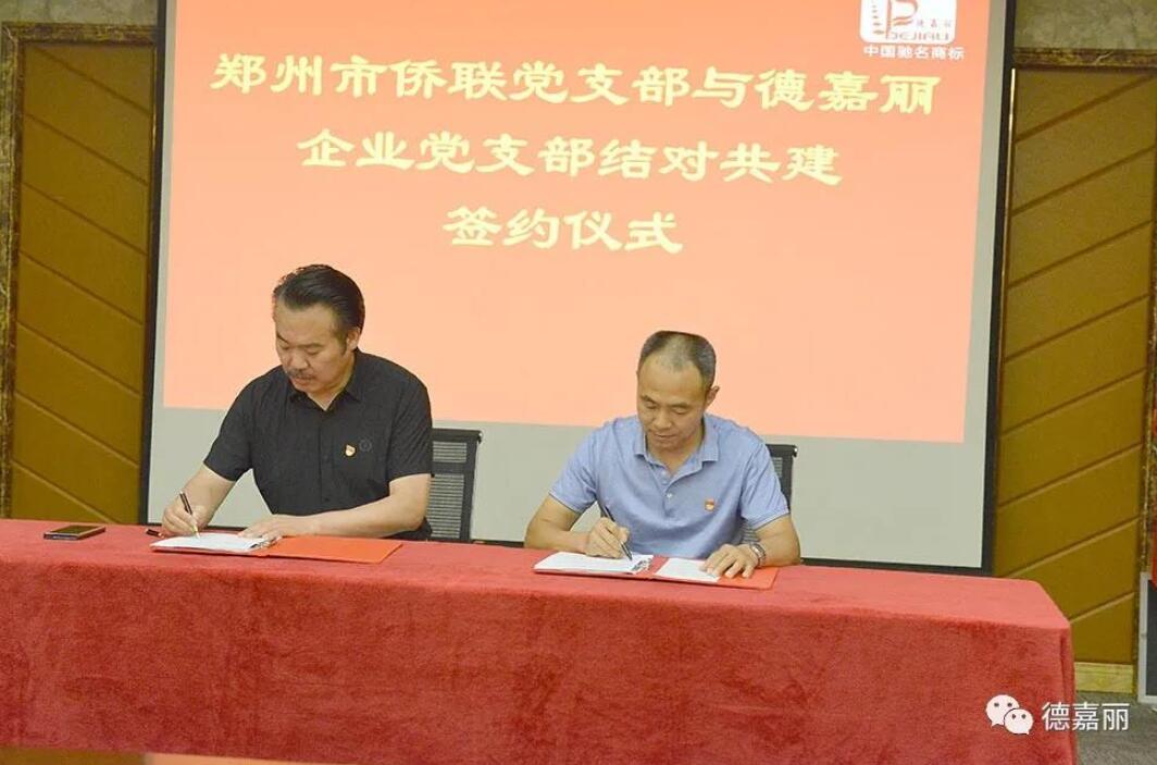 為認真貫徹落實《中共鄭州市委統戰部機關黨委優化營商環境實施方案》開展“結對共建”活動要求,6月29日上午,中共鄭州市僑聯黨支部書記、四級調研員王洪濤與中共河南省德嘉麗科技集團有限公司黨支部書記李明獻在河南省德嘉麗科技集團有限公司簽訂了結對共建活動協議,雙方本著“互學互助、共同提高”的原則,通過搭建結對共建平臺,開展學習交流活動,共同提高思想認識,推進黨建工作規范開展,以黨建高質量引領中心任務發展,以優異成績喜迎黨的百年華誕。
