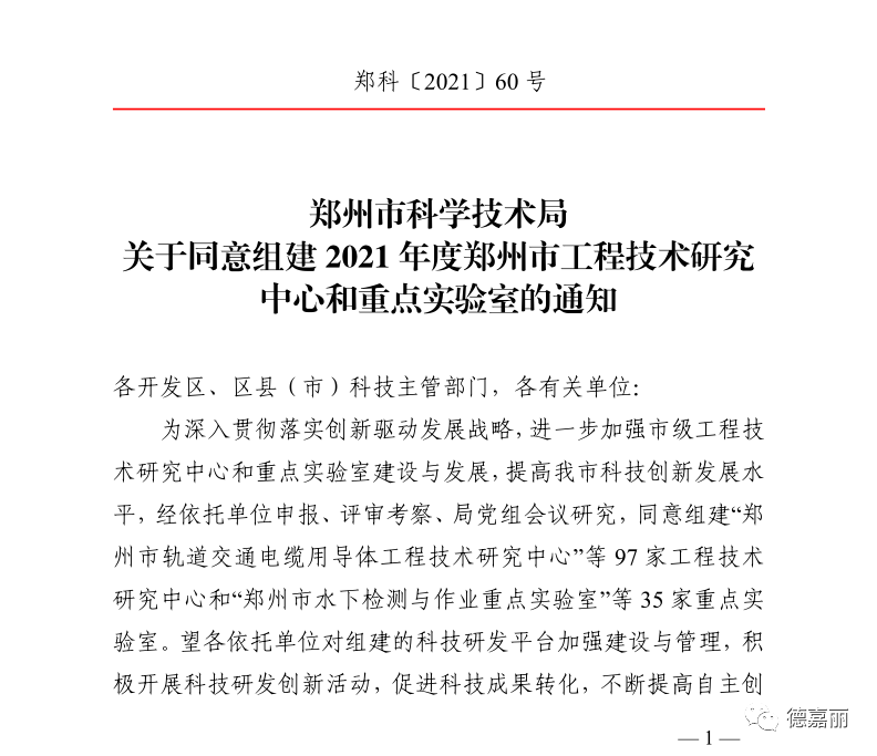 為深入貫徹落實創新驅動發展戰略,進一步加強市級工程技術研究中心和重點實驗室建設與發展,提高我市科技創新發展水平,經依托單位申報、評審考察、局黨組會議研究,同意組建“鄭州市軌道交通電纜用導體工程技術研究中心”等97家工程技術研究中心和“鄭州市水下檢測與作業重點實驗室”等35家重點實驗室。望各依托單位對組建的科技研發平臺加強建設與管理,積極開展科技研發創新活動,促進科技成果轉化,不斷提高自主創新能力。