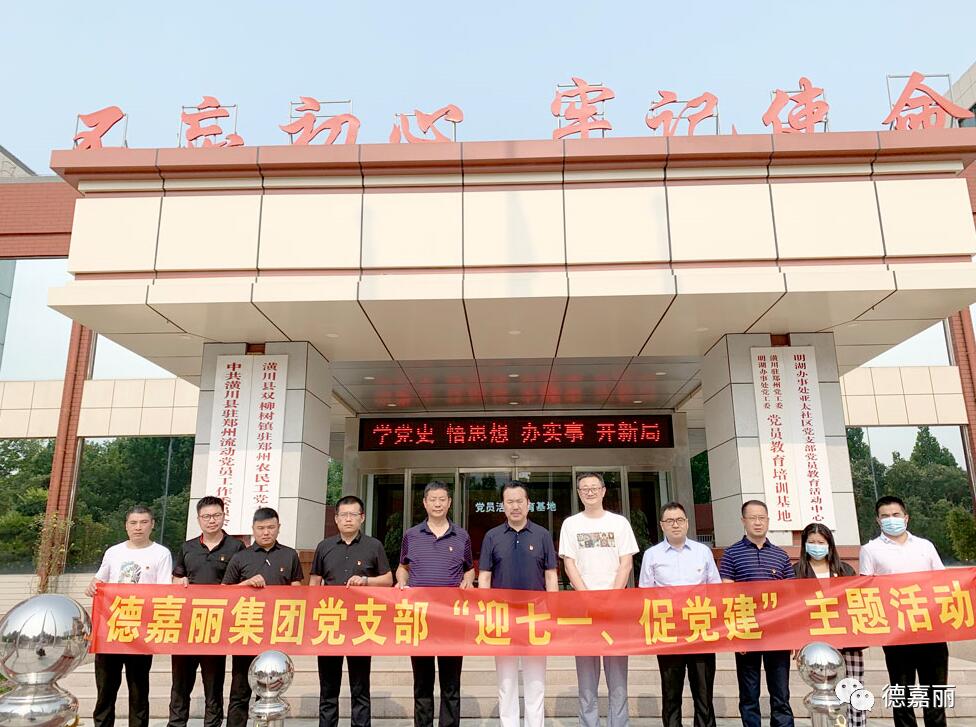 為隆重慶祝中國共產黨成立100周年,積極開展學黨史教育活動,堅定共產主義崇高的理想信念,不忘初心使命,學黨史、悟思想、辦實事、開新局,提升黨支部凝聚力和戰斗力,按照經開區企業黨工委工作部署,2021年6月11日上午,中共河南省德嘉麗科技集團有限公司支部委員會書記李明獻、副書記張小鵬帶領黨員到中共潢川縣駐鄭州流動黨員工作委員會開展慶祝建黨100周年暨黨史學習教育活動,參觀學習潢川縣駐鄭州流動黨員活動教育基地。