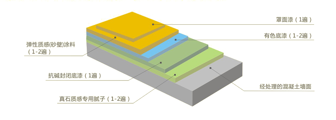 4、彈性質感漆施工的藝術性,請選用配套的著色底漆以達更好效果。
