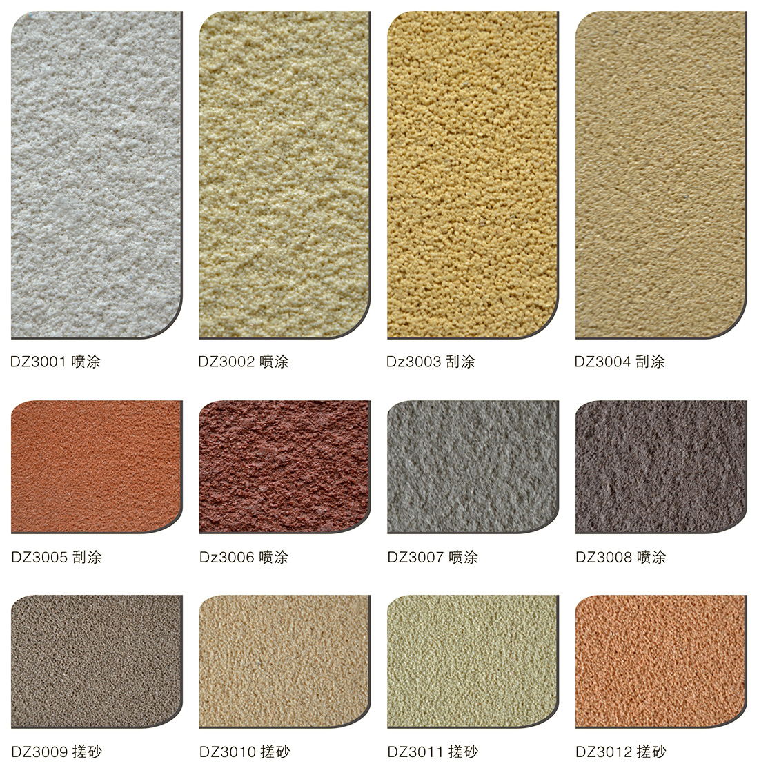 注釋:以上系列產品,因天然彩砂及用戶在使用過程中因基材、工藝、施工方法、濕度、溫度不同等因素,可能有色差。因印刷效果與實際色卡有偏差,此色卡僅供參考,不作為驗收標準。